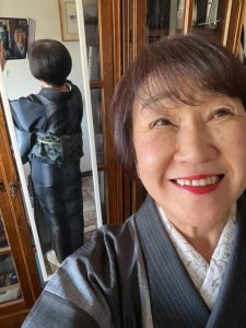着物は紺の結城紬