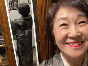 今日の着物は黒の大島亀甲模様