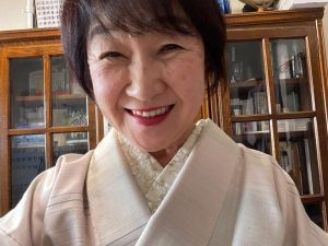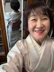 着物はピンクの紬