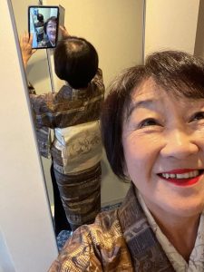 着物はエジプト柄の大島