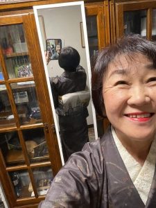 今日の着物も大島