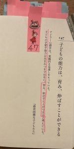 今日の言葉 【子どもの能力は、育み、伸ばすことができる】 これは子どもだけじゃあないと思う。 自分で自分に蓋をしない限り伸ばせる。