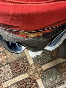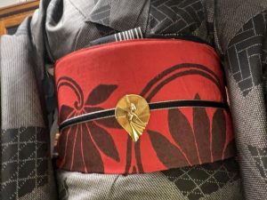帯は赤で薄めの生地
