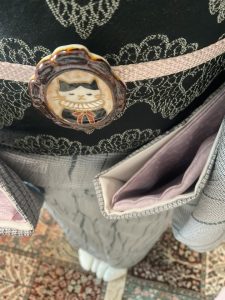 帯留の猫はお気に入り。