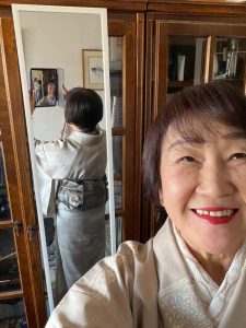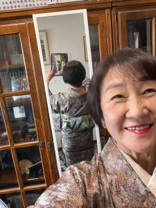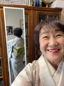今日の着物はお相手のイメージで選んだ。